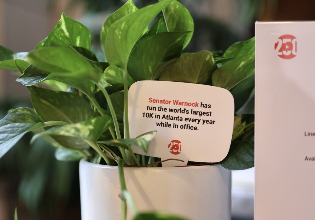 Above: Fun facts about Senator Warnock could be found around the event venue for guests attending the live podcast recording